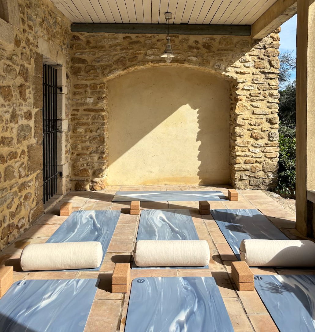 Piscine à l’ombre des cyprès, terrasses ensoleillées, salle de pratique ouverte sur les collines, tout invite à la reconnexion.